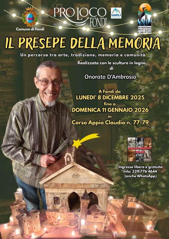 In un dicembre che si annuncia vibrante di emozioni e luci, la Pro Loco Fondi APS, aderente all’Unione Nazionale delle Pro Loco d’Italia (Unpli), svela al pubblico un evento che promette di accendere il cuore della città: “Il Presepe della Memoria”, un viaggio straordinario in cui il legno diventa eco del passato, specchio del presente e promessa di futuro.