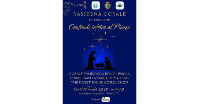 L’evento, ormai giunto alla sua IX edizione, quest’anno vedrà insieme la Corale Polifonica Fondi-Lenola, la corale Santa Maria De Mattias e The Sweet Sound Gospel Choir per un totale di oltre 70 voci dirette dai Maestri Gianni Mastromanno e Mariacivita Marrocco.