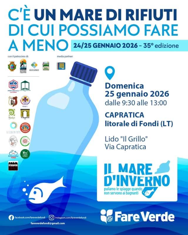 "Il Mare d'Inverno" è una manifestazione organizzata da Fare Verde, con il Patrocinio del Comune di Fondi, del Parco Naturale Regionale Monti Ausoni e Lago di Fondi, del Parco Riviera Di Ulisse e del Parco Naturale dei Monti Aurunci. Un'iniziativa che anche quest'anno è sostenuta da tante realtà del territorio: Associazione Pro-Capratica, Casa della Cultura, Fotografichementi, ACLI Provinciali di Latina, Asd Cicloamatori Fondi, Gruppo Scout Fondi 2 "Karol Wojtyla", Associazione Nadyr Donne contro la violenza, Sentieri di Pan, Musicinecultura, Il Quadrato Fondi, Obiettivo Comune, Leggimi Sempre, Il cielo è di tutti. Media Partner è anche quest'anno Radio Show Italia 103e5.
