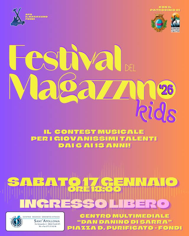 Dopo il successo dello scorso anno, ritorna il Festival del Magazzino Kids, contesto canoro organizzato dall’APS il Magazzino Fondi e dedicato ai giovanissimi cantanti dai 6 ai 13 anni.