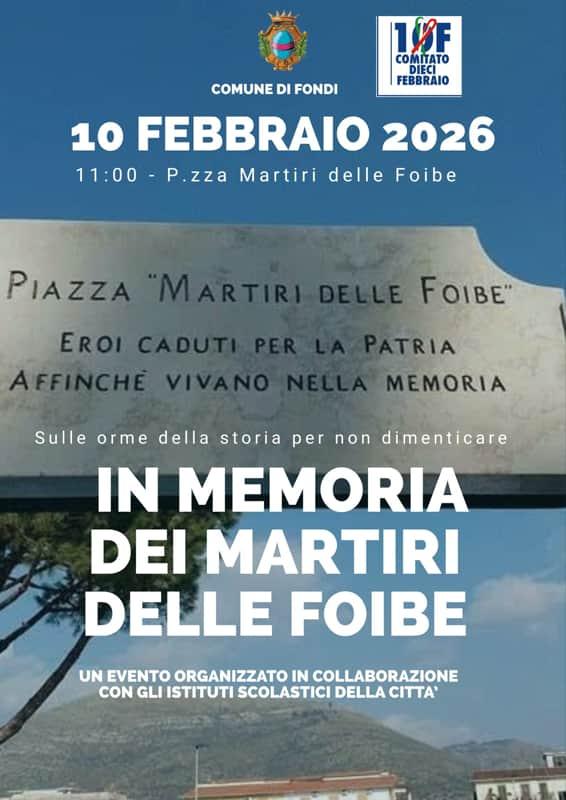 La mattinata è organizzata dal Comune di Fondi che ha integrato la richiesta di patrocinio pervenuta dal Comitato 10 febbraio. L’appuntamento è per domani martedì 10 febbraio, alle ore 11:00, in Piazza Martiri delle Foibe.