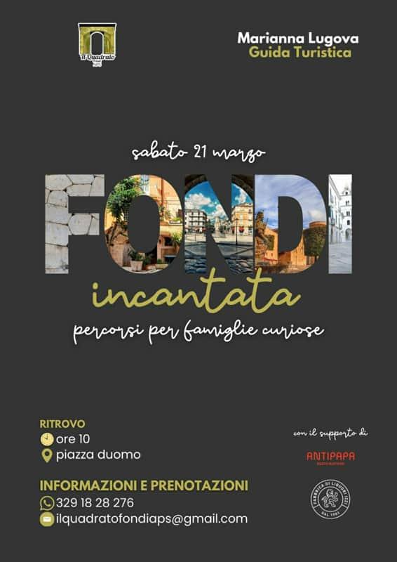 Percorsi per famiglie curiose sarà un’occasione speciale per condividere emozioni, imparare divertendosi e riscoprire insieme la bellezza del nostro territorio. Insieme alla Guida Turistica Marianna Lugova, con il supporto di Antipapa e Izzi Liquori, nel cuore di Fondi. Un Progetto con cui daremo il "benvenuto alla Primavera" proprio il prossimo 21 Marzo e che contiamo di proporre anche con altre formule e opzioni per far diventare le visite guidate un'opportunità di crescita culturale e promozione turistica, con l'auspicio di richiamare in Città un pubblico diverso dal solito.