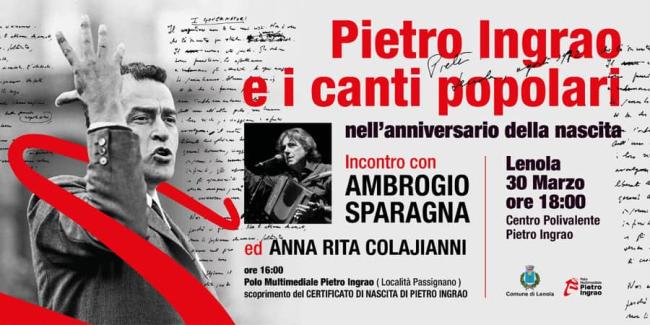 Ciò perché si era instaurato negli anni un profondo legame culturale ed affettivo tra Ingrao e Sparagna, che – accompagnato dall’Orchestra Popolare Italiana e dal Coro diretto da Anna Rita Colaianni - si era esibito in suo onore anche in occasione delle cerimonie svolte a Roma ed a Lenola in occasione di vari compleanni.