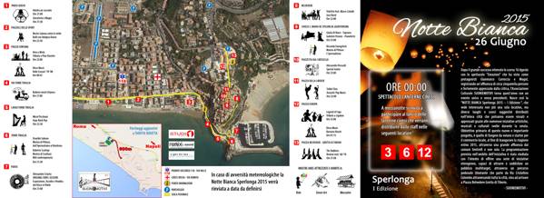 Gli eventi in programma per la notte bianca sono qui completamente riportati, tra musica, giochi, arte e divertimento. Dal tramonto all’alba. A dare risalto alla manifestazione sarà anche Radio Spazio Blu, radio ufficiale della “Notte Bianca Sperlonga 2015 - I Edizione”.