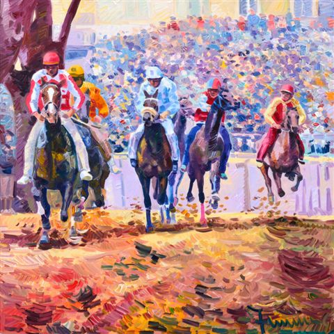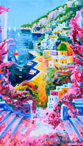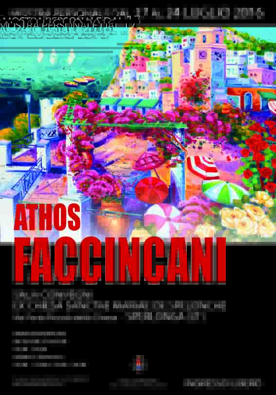 “L’arte nella figura e nel paesaggio è osservazione, percezione, esaltazione della bellezza ed espressione della fantasia cresciuta davanti al cavalletto”. Così Athos Faccincani introduce la sua idea di fare arte quando risponde alla solita domanda di chi si informa se dipinge all’aperto o in studio. Ebbene, i suoi fiori fioriscono all’interno del suo atelier; i suoi coloratissimi paesaggi sono una finestra nella sua immaginazione, tant’è che spesso non sono fedelissimi alla realtà, ed è proprio questa la chiave della sua interpretazione da impressionista: la natura, i paesaggi, le città più belle del mediterraneo hanno un’unica funzione, che è quella di ispirare; poi la visione viene maturata in studio, rielaborata in base alla sua sensibilità, al suo vissuto, intrisa dei suoi desideri futuri, contaminata dal suo stato d’animo. Così questa terra, dove il tempo sembra essersi fermato, dove lo sguardo si perde nella natura lussureggiante, che dipinge il paesaggio di mille sfumature, in un ambiente di grande fascino, ha ispirato Athos Faccincani.
