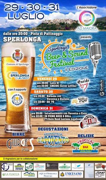 Organizzato dalla nuova associazione sperlongana "AD MAIORA..dove gli altri si fermano, noi partiamo" , (organizzazione nata dal Club "Insieme per Crescere') la manifestazione vedrà da venerdi 29 a domenica 31 luglio tre giorni di musica e divertimento accompagnati da degustazioni di birre e prodotti artigianali. Ad aprire la II°edizione del festival il 29 luglio sarà il gruppo ENEIDE - una Cover Band dei Litfiba.