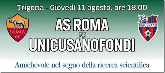 E’ un’amichevole di lusso quella che giovedì 11 agosto vedrà l’Unicusano Fondi Calcio affrontare l’AS Roma. In vista dei prossimi importanti impegni che l’aspettano la formazione di Luciano Spalletti ha scelto di ospitare a Trigoria  la squadra della ricerca scientifica italiana, appena promossa in Lega Pro dopo la vittoria dei play off e della Coppa Italia di serie D. Una partita che gli universitari vorranno onorare al meglio, consapevoli della stagione che li aspetta e dell’importante palcoscenico sul quale andranno a misurarsi.