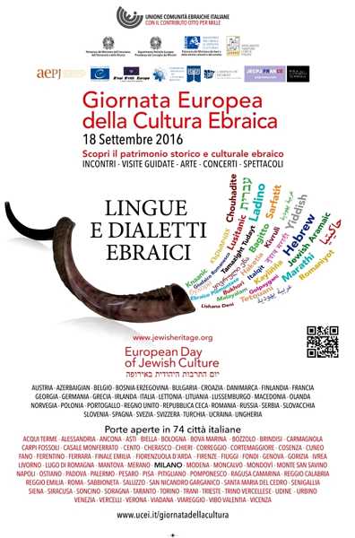 Alle ore 10.15 presso il Complesso della Giudea si terrà l’incontro dal titolo “Le lingue ebraiche”. Il tema della XVII edizione della Giornata è infatti “Lingue e dialetti ebraici”. Oltre all’ebraico – la lingua della Torah – il riferimento è allo Yiddish degli ebrei dell’Est Europa, al Judeo-Espanol parlato dalle comunità ebraiche del bacino mediterraneo, ma anche ai diversi dialetti italiani, come il giudaico-romanesco, il bagitto-livornese, il giudaico-veneziano e il giudaico-torinese.