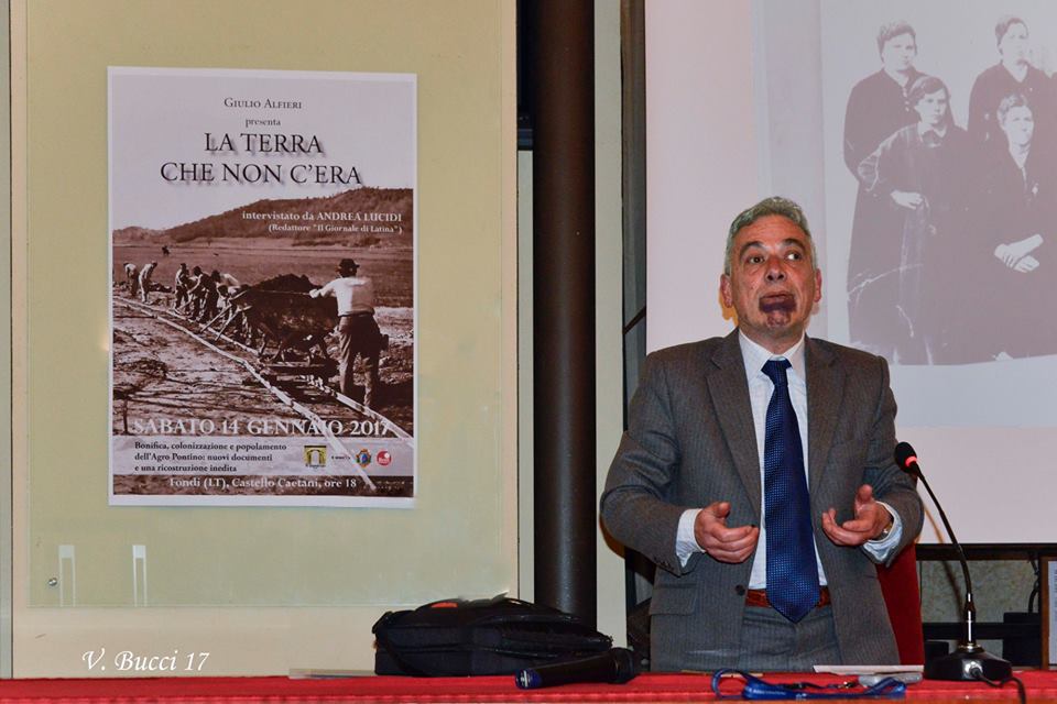 I documenti e le ricerche di Giulio Alfieri, le domande e le curiosità di Andrea Lucidi, la testimonianza ed i ricordi di Fernando Cristini. Una serata stupenda, quella di Sabato 14 Gennaio a Fondi, per la Presentazione del Libro "La terra che non c'era". Nella Sala al Piano Terra del maestoso Castello Caetani, un numeroso pubblico ha seguito con attenzione l'Evento ideato dall'Associazione Culturale "Il Quadrato", introdotto da Francesco Ciccone.