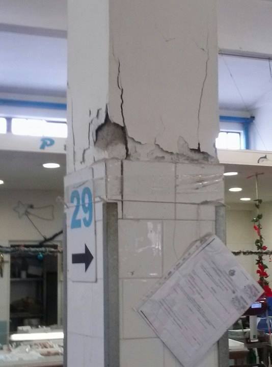 La preoccupazione di noi Consiglieri del Partito Democratico si è acuita a seguito dei movimenti tellurici in merito al mercato coperto di via Gioberti, che mostra evidenti segnali di degrado e non solo: sedici dei venti pilastri che sorreggono la campata dello stabile, infatti, presentano rigonfiamenti, lesioni e crepe nella parte centrale, come risulta evidente dalle foto che abbiamo scattato. Poiché le lesioni si riscontrano tutte nella parte centrale dei pilastri, sembrerebbe che gli stessi siano eccessivamente sottili in proporzione all’altezza del solaio.