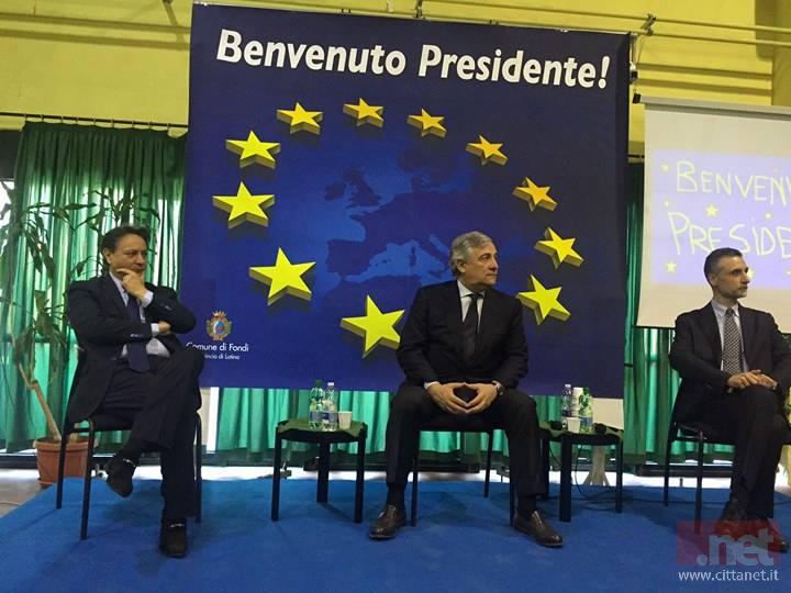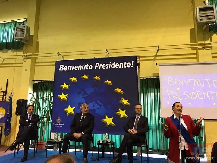 Grande partecipazione ed interesse da parte dei ragazzi che hanno "interrogato" il presidente Antonio Tajani sui temi dell'Europa come immigrazione, economia, terrorismo, brexit e Turchia. Il presidente Tajani ha apprezzato moltissimo l'iniziativa Comune di Fondi di voler avvicinare i giovani all'Europa con un corso specifico con cui sono state affrontate le varie tematiche e soprattutto evidenziate le opportunità che i giovani possono avere in Europa con esami ed altri programmi di coinvolgimento formativo e lavorativo. Gli studenti sono stati scelti per merito scolastico e i più bravi alla fine di un test sono stati ammessi ad uno stage gratuito a Bruxelles.