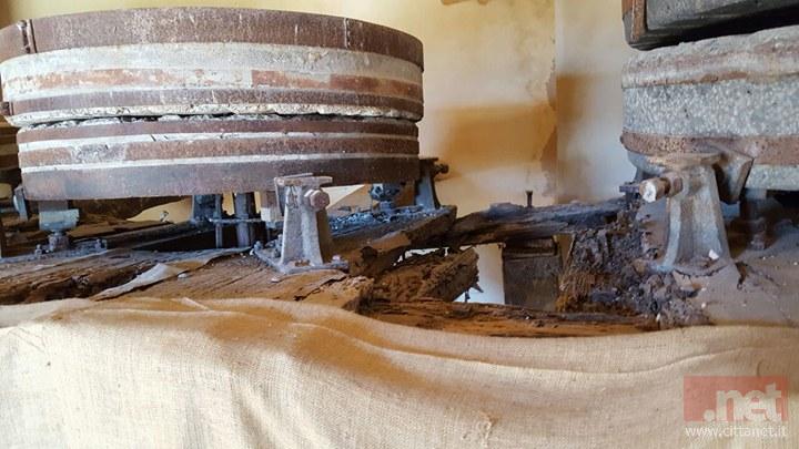 • A conclusione della cerimonia suddetta si è proceduto alla visita del sito, nel corso della quale  ho potuto constatare, insieme anche a diversi tecnici presenti, che il supporto ligneo delle antiche macine in pietra del Mulino risulta completamente marcio, tanto che in più punti il peso sovrastante ha già provocato  cedimenti di oltre dieci centimetri.