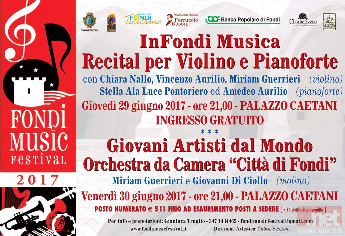 I prossimi due concerti si terranno il 29 ed il 30 giugno, entrambi a Palazzo Caetani (Fondi) alle ore 21. Il primo, dal titolo "InFondi Musica", sarà un recital per violino e pianoforte, con Chiara Nallo, Vincenzo Aurilio, Miriam Guerrieri (violino), Stella Ala Luce Pontoriero e Amedeo Aurilio (pianoforte). Il secondo, "Giovani Artisti dal Mondo", vedrà la presenza dell'Orchestra da Camera "Città di Fondi" che accompagnerà i giovani solisti Miriam Guerrieri e Giovanni Di Ciollo al violino.