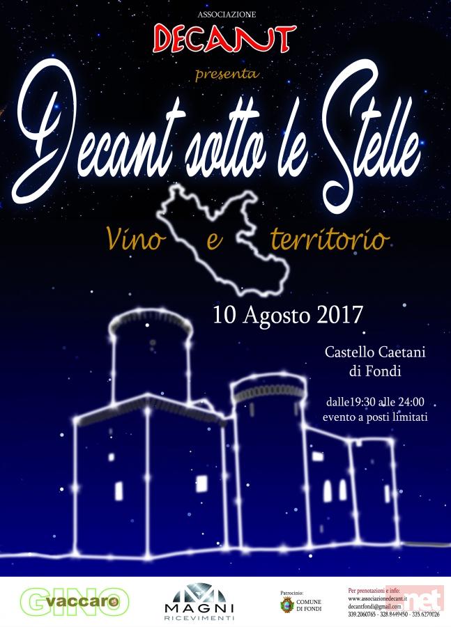 Decant sotto le stelle mira a valorizzare i prodotti enogastronomici del territorio laziale attraverso la partecipazione di numerose aziende vitivinicole, che porteranno in degustazione le loro migliori etichette. Ancora una volta saranno chef ed operatori della gastronomia locale a studiare gli abbinamenti e a proporre creazioni culinarie. Tra le cantine partecipanti: Azienda Agricola Artico, Alberto Giacobbe, Cantina Sant'Andrea, Cantine Lupo, Cantina Montecorvino, Cantina Villa Gianna, Carlo Magno, Castel de Paolis, Casa Divina Provvidenza, Casale Certosa, Casale del Giglio, Cincinnato, Colle Picchioni, Consorzio di tutela Cesanese del Piglio, De Sanctis, Donato Giangirolami, La Luna del Casale, Marco Antonelli, Marco Carpineti, Monti Cecubi, Palazzo Prossedi, Piana dei Castelli, Pietra Pinta, Pileum, Riserva della Cascina, Vigneti Iucci.