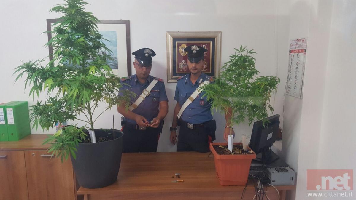 In data 6 settembre, i militari dell’Arma del luogo, a conclusione di specifica attività investigativa, traevano in arresto nella flagranza del reato di “detenzione ai fini di spaccio di sostanze stupefacenti” Vincenzo P., 34enne del luogo. Il predetto, a seguito di perquisizione domiciliare, veniva trovato in possesso di due piante di canapa indiana – della rispettiva altezza di 75 e 105 centimetri – che coltivava nel balcone della propria abitazione, grammi 17 circa di hashish ed un coltello utilizzato per il taglio dello stupefacente. Lo stupefacente e il materiale rinvenuto sono stati sottoposti a sequestro. L’arrestato, espletate le formalita’ di rito, veniva condotto presso il proprio domicilio per rimanervi ristretto, in regime di arresti domiciliari, in attesa della celebrazione del rito direttissimo fissato per la mattinata di domani 07 set 17.