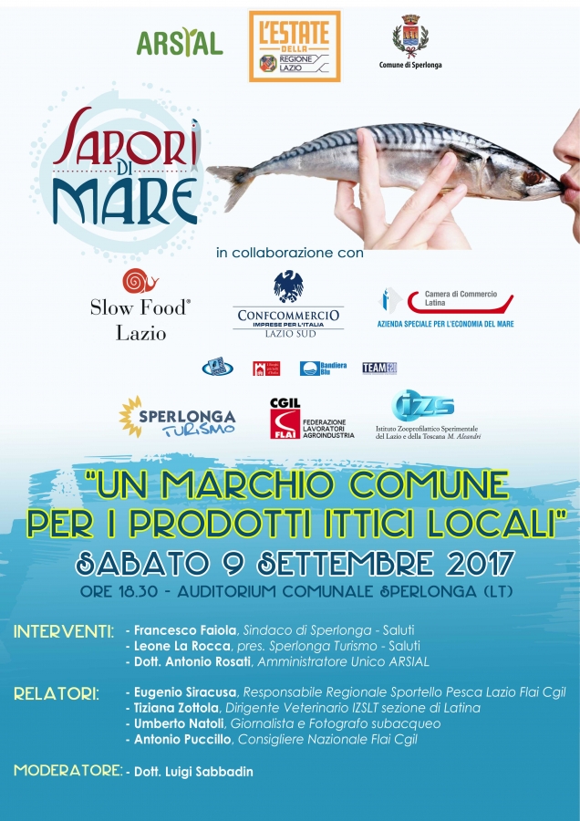 Sabato 9 settembre, alle 18,00, appuntamento all’Auditorium Comunale per  una nuova tavola rotonda, organizzata da Arsial, Sperlonga Turismo e Flai Cgil dal titolo “Un marchio comune per la produzione ittica locale”. Convegno che cercherà di porre le fondamenta per una discussione e l’organizzazione di sinergie locali a favore del settore ittico, sulle orme di simili azioni svolte in altre regioni italiane con ottimo successo.