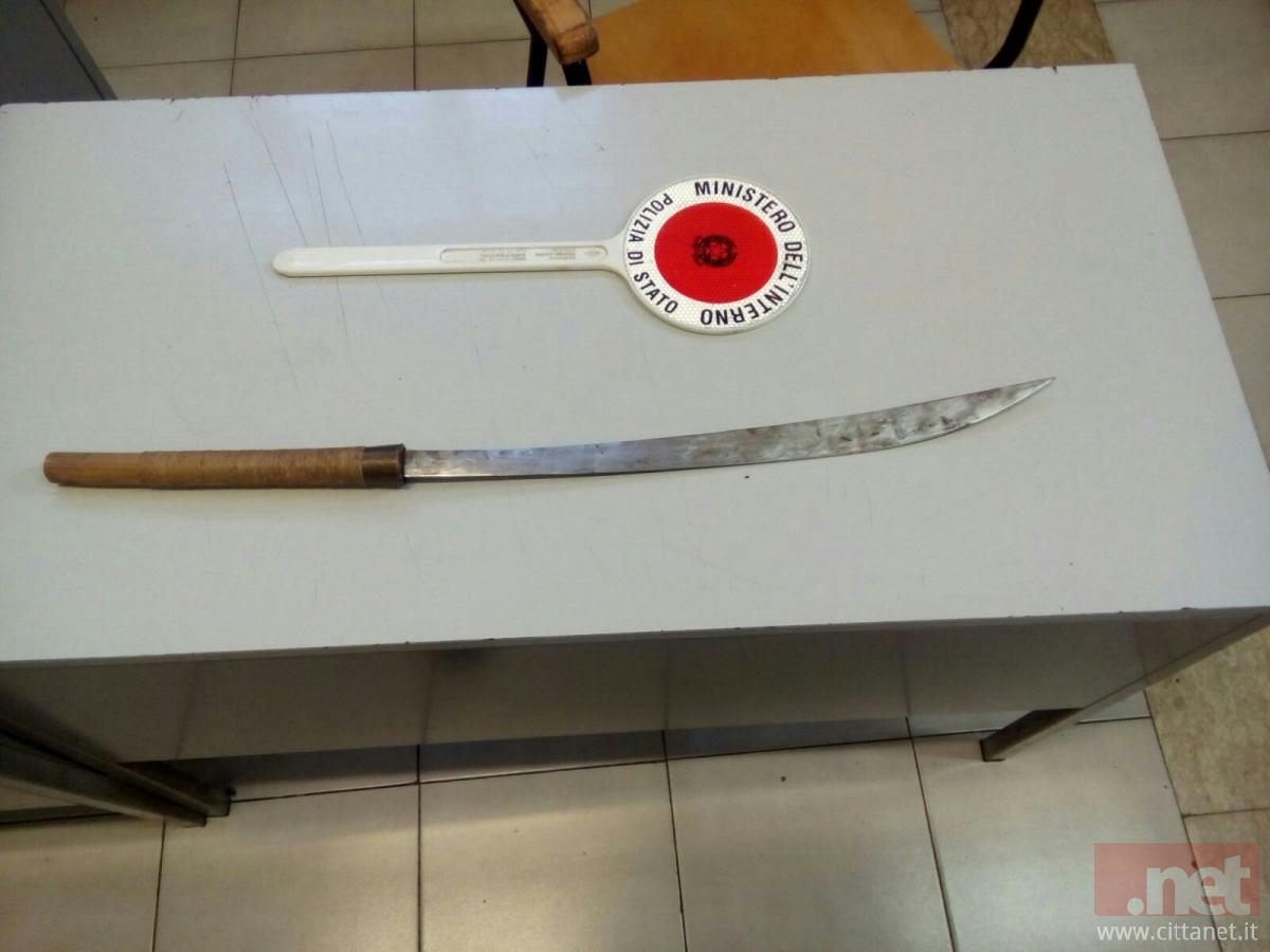Verso le ore 16,00 giungeva richiesta di aiuto alla Sala Operativa del Commissariato di Fondi con la quale l’interlocutore riferiva che mentre si trovava in casa era stato aggredito e ferito con una sciabola dal suo vicino di casa. Immediatamente il personale in servizio di Volante, recatosi sul luogo indicato, aveva modo di bloccare l’aggressore subito identificato per il noto pregiudicato O.F., che, ancora in stato di agitazione, tentava di allontanarsi. L’aggredito, coabitante nello stesso fabbricato, peraltro già sottoposto al regime degli arresti domiciliari, sanguinante ad un braccio, immediatamente veniva accompagnato a bordo di autoambulanza del 118 presso il locale Ospedale ove venivano refertato per “trauma contusivo del cuoio capelluto e del gomito” con giorni 4 di prognosi.