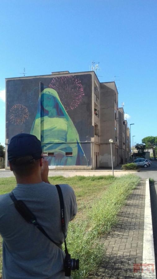 La Vergine Maria rappresentata da Hem in Via Lazio è un suo personalissimo dono al popolo italiano, alle forti tradizioni cristiane, al legame indissolubile che, dal punto di vista dell'artista americano, traspare ed unisce gli Italiani ai valori cattolici. Un'opera che rappresenta un richiamo all'identità , per una nazione dipinta come un Paese religioso e molto attaccato alla fede. Il lavoro, autorizzato dall'ATER, Azienda Territoriale per l'Edilizia Residenziale Pubblica della Provincia di Latina, e patrocinato dal Comune di Fondi, è stato seguito con piacere dai residenti, che hanno collaborato durante i lavori e testimoniato il loro apprezzamento volendosi complimentare con l'artista e immortalandosi in selfie sotto al muro e scattando fotografie che nel giro di poche ore hanno riempito i social.