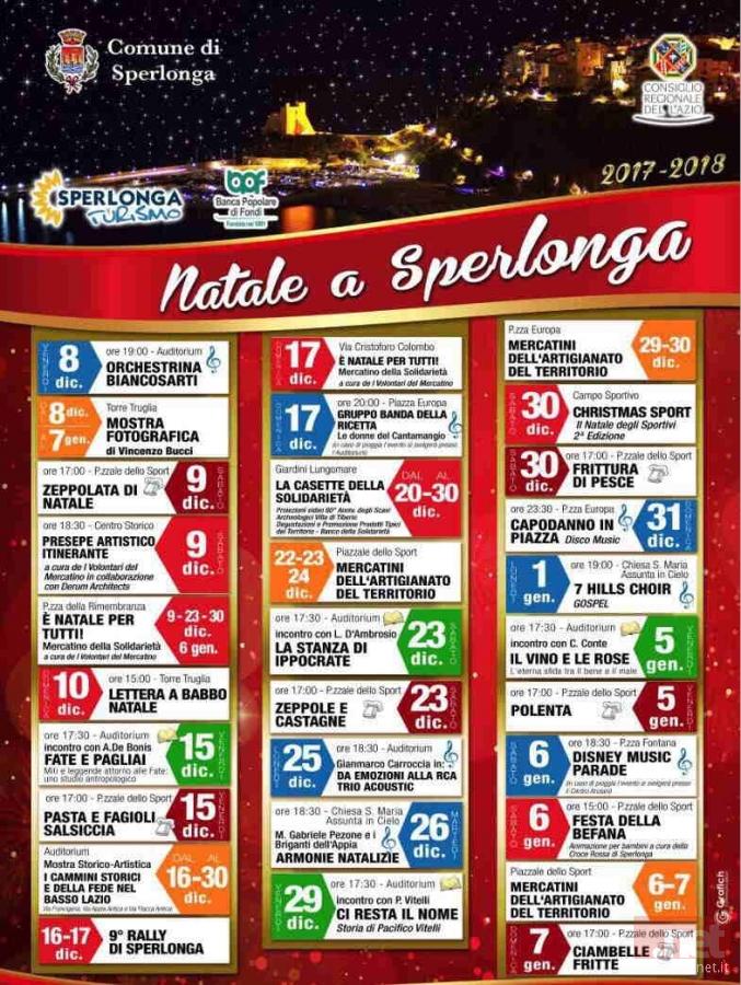 Con la festa dell’Immacolata ha inizio il “Natale a Sperlonga”. Un vasto cartellone tra concerti, sport, rally, incontri con autori, attività e festeggiamenti, tra cui il tradizionale Capodanno in piazza, scalderanno le fredde giornate di questa stagione natalizia. (Locandina in allegato).