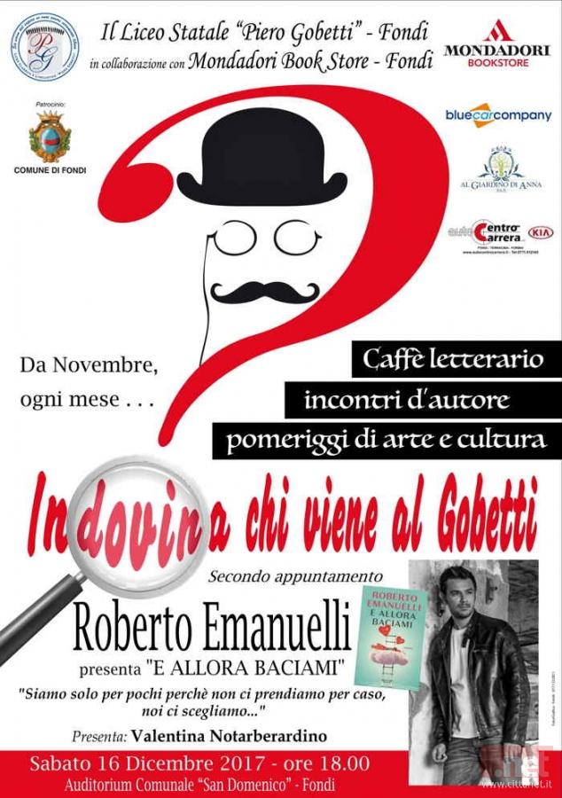Il ciclo di incontri “Caffè letterario - Indovina chi viene al Gobetti?” promosso dal Liceo Statale “Piero Gobetti”, inaugurato nel Novembre scorso con l’intervento del Premio Strega Antonio Pennacchi, prosegue con l’appuntamento di Sabato 16 Dicembre p.v. che vedrà la partecipazione di un ospite seguitissimo dal popolo del web: Roberto Emanuelli.