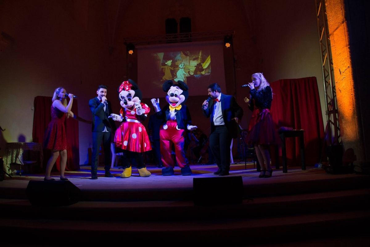 Non sono mancate le improvvisazioni con il pubblico, da parte degli attori e da Minnie e Topolino, guest star della serata. Lo spettacolo nasce dall’idea di Giovanni Pannozzo, attore e titolare dell’impresa di spettacolo “On Broadway”, in collaborazione con l’associazione musicale “Ferruccio Busoni”, con la Libreria “Il Mondo di Alice” e con il patrocinio del Comune di Fondi. Uno show andato in scena in contemporanea con alcuni teatri americani, grazie alle collaborazioni che Pannozzo ha istaurato in questi mesi con Enti oltre oceano.