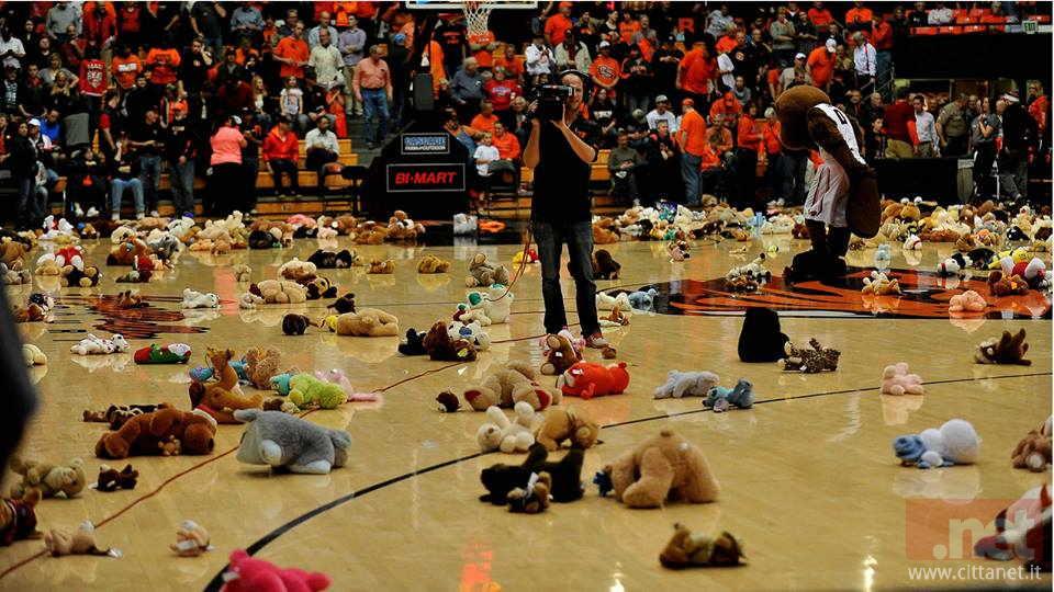 Qui il link al video youtube del Teddy Bear Toss andato in scena sui campi italiani qualche tempo fa.