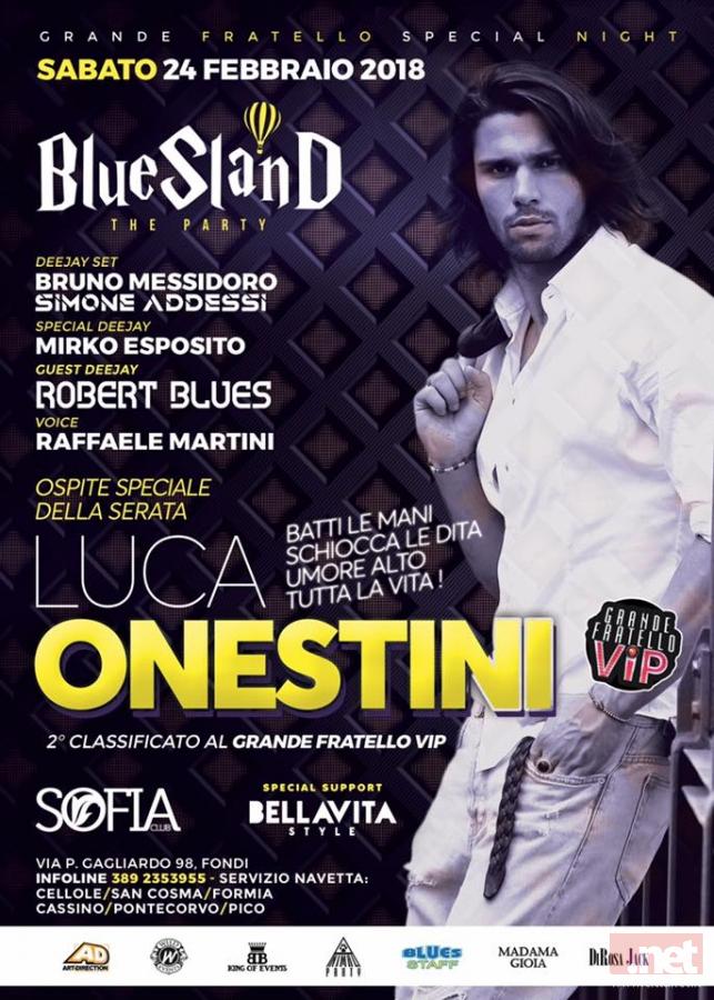 Secondo classificato all’ultimo Grande Fratello Vip, concorrente di Temptation Island nel 2017, Mister Italia nel 2013, tronista e corteggiatore di Uomini e Donne ma anche modello e volto tra i più amati del piccolo schermo: è Luca Onestini il prossimo super ospite di “Bluesland”. Il party più amato del Basso Lazio sta quindi per tornare al “Sofia Club” di Fondi con guest dj, effetti scenici speciali e ritmi scatenati. La data da segnare in agenda è sabato 24 febbraio quando dopo un preserata scoppiettante, l’intero dance floor intonerà il tormentone degli ultimi mesi: “Batti le mani, schiocca le dita, umore alto, tutta la vita”. Oltre a intrattenere il pubblico dalla consolle, Luca Onestini dedicherà tanto tempo anche ai fan per autografi, selfie e foto di gruppo.
