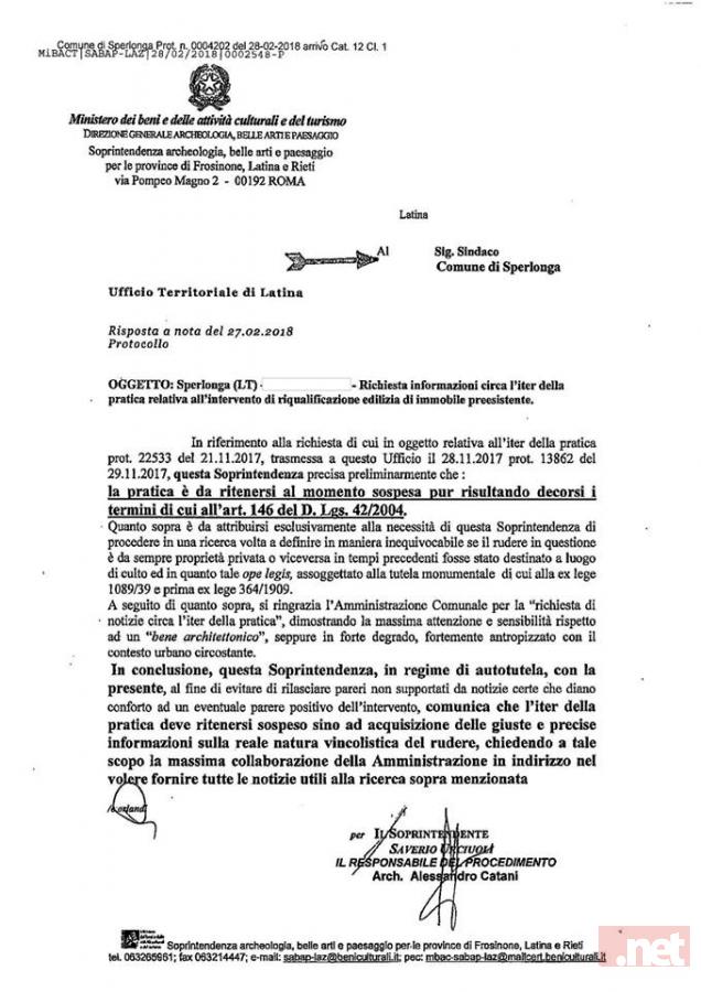 La Soprintendenza archeologia, belle arti e paesaggio sospende la pratica per la realizzazione di appartamenti nel rudere presso l'ex chiesa della croce.