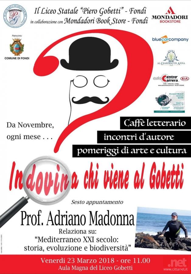 Venerdì 23 Marzo p.v., alle ore 11.00 presso l’Aula Magna del Liceo “Piero Gobetti” di Fondi, il prof. Adriano Madonna, biologo marino, docente e ricercatore all’Università “Federico II”, sarà protagonista di un incontro sul tema “Mediterraneo XXI secolo: storia, evoluzione e biodiversità”.