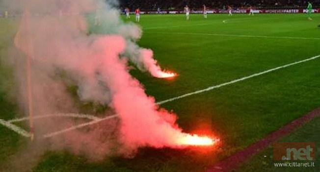 L’attento lavoro investigativo effettuato dal personale del Commissariato di P.S. di Fondi corroborato dall’acquisizione delle riprese del sistema interno di video sorveglianza e di quelle effettuate da personale della Polizia Scientifica presente sul posto, ha permesso di individuare ed identificare il tifoso ultras del Siracusa che, a petto nudo, accendeva due fumogeni prelevati da uno zaino per poi gettarli sotto la Tribuna dove vi erano altri ULTRAS, creando un serio pericolo per l’incolumità dei presenti.