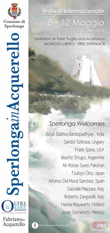 Quattro giorni all’insegna del colore e dell’acqua vedranno Sperlonga popolata da artisti internazionali. Dall’8 al 12 maggio. Tutte le dimostrazioni dei Maestri, la partecipazione ai plainair e alle pitture collettive sono gratuite. Torre Truglia, l’Auditorium e il Palazzo Comunale ospiteranno fino al prossimo 3 giugno le opere di Frank Spino - USA, Javier Gomesoto - MEXICO, Bea Strugo - ARGENTINE, Alfonso Del Moral Sánchez - SPAIN, Gabriele Mazzara - ITALY, Roberto Zangarelli - ITALY, Hannie Rieuwerts - HOLLAND, Sandor Szikszai - HUNGARY, Ali Abbas Syed - PAKISTAN, Rajat Subhra Bandopadhyay - INDIA, Tsukiyo Ono - JAPAN. L’ingresso è libero. Info point presso Torre Truglia durante i giorni del Festival.
