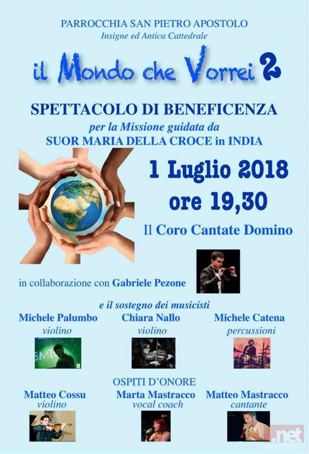 Il Coro Cantate Domino in collaborazione con Gabriele Pezone presentano “Il Mondo che Vorrei 2”, Spettacolo di Beneficenza per la Missione guidata da Suor Maria della Croce in India.