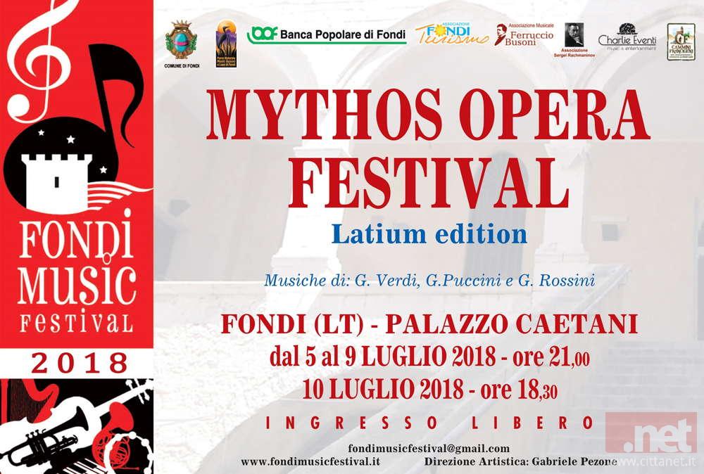 Il Fondi Music Festival promuove importanti iniziative in collaborazione con il prestigioso Mythos Opera Festival, che si terrà nel prossimo mese di Agosto nello splendido scenario del teatro antico di Taormina. Nell’ambito di questa cooperazione avranno luogo a Fondi ben 6 concerti con cantanti facenti parte dei cast delle opere del Mythos Opera Festival. I concerti si terranno tutti alle 21.30 ad eccezione di quello del 10 Luglio, programmato alle ore 18.30.
