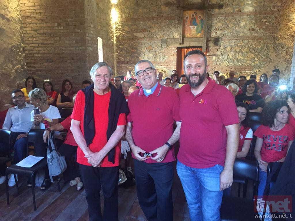Infine ha voluto dimostrare tutta la sua vicinanza e il suo apprezzamento don Luigi Ciotti, salutando con le sue parole, la sua carica, la sua forza, gli intervenuti: “se le mafie sono forti è perché noi siamo stati troppo deboli. Dobbiamo provare disgusto per quanto sta avvenendo”. Poi un passaggio sulla maglietta rossa, indossata da quasi tutta la platea: "sento il bisogno anch'io di mettermi nei panni degli altri. Quella maglietta rossa ci ricorda esattamente questo: ci mettiamo nei panni di quei bambini e di quelle mamme. Dobbiamo metterci nei panni anche dei bambini di questo paese. L'ISTAT ci ha detto che 1.200.000 bambini in Italia vivono la povertà assoluta. La maglietta rossa ci ricorda i bambini, ma non solo i bambini, i poveri, gli ultimi, quelli che fanno fatica". In ultimo, un passaggio sulle parole di don Francesco Fiorillo, sul termine “ancòra” che cambiando l’accento può diventare “àncora”. Così il Monastero di San Magno, sede del presidio e  spazio di bellezza e libertà, può trasformarsi in un’àncora per il nostro territorio.