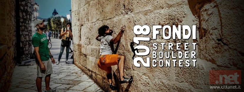 Sabato 20 ottobre nel centro storico, un appuntamento imperdibile Arriva anche a Fondi lo Street-Boulder Contest. Sabato 20 ottobre 2018 sarà possibile mettersi alla prova con la prima arrampicata urbana tra le mura del centro storico di Fondi. L'evento è organizzato da