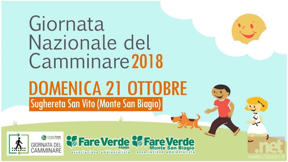Nell’ambito della "Giornata del Camminare 2018", i Gruppi Locali dell’Associazione Ambientalista "Fare Verde" di Fondi e Monte San Biagio organizzano una passeggiata nell'area della Sughereta di San Vito, nel Comune di Monte San Biagio. Una Domenica mattina immersi nel verde, accompagnati dalla Guida Ambientale Escursionistica Giancarlo Pagliaroli, insieme a diverse associazioni del territorio che hanno aderito all’iniziativa già in occasione dell'Edizione 2017, tenutasi lungo l'Appia Antica tra Fondi e Itri.