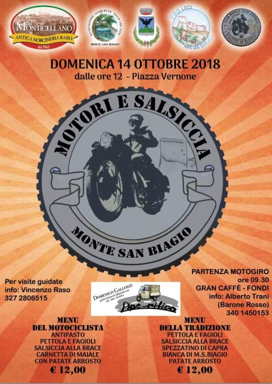 Motori e salsiccia: domenica 14 ottobre a Monte San Biagio cibo tipico e rombi a due ruote