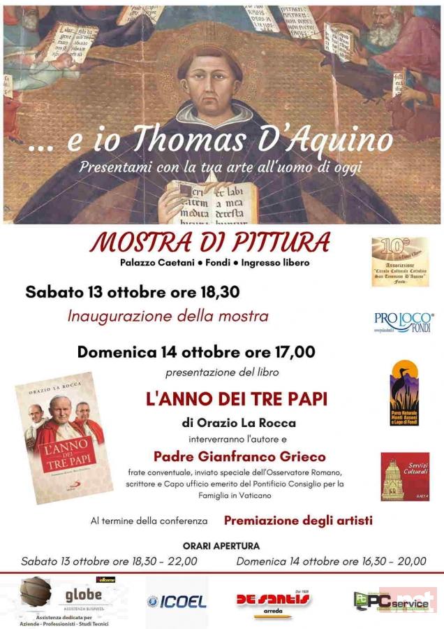 Una mostra di pittura su San Tommaso e la presentazione de “L’Anno dei Tre Papi” di Orazio La Rocca: l’Associazione “Circolo Culturale Cattolico San Tommaso D’Aquino” chiude con un doppio appuntamento i festeggiamenti per il suo primo decennale di attività.