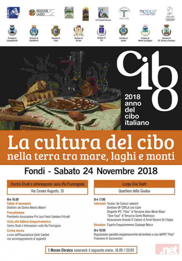 “La cultura del cibo nella terra tra mare, laghi e monti” sabato 24 novembre a Fondi
