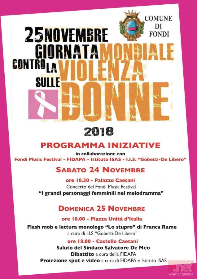 Il Sindaco di Fondi Salvatore De Meo rende noto che il Comune ha aderito anche per il 2018 alle celebrazioni, in collaborazione con Fondi Music Festival, FIDAPA, Istituto ISAS e I.I.S. “Gobetti-De Libero”.