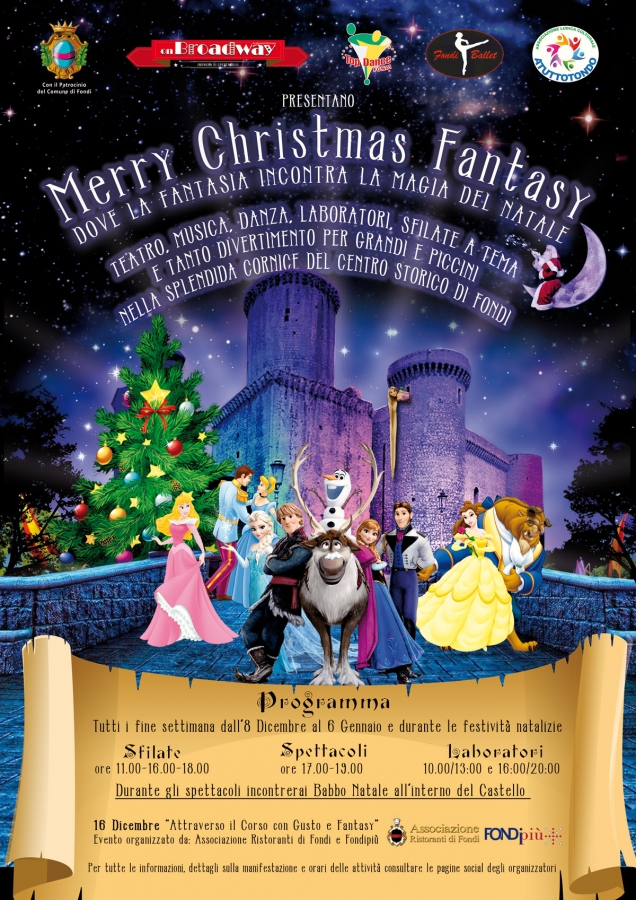 L’associazione culturale “On Broadway”, la scuola di ballo “ASD Top Dance Fondi”, la scuola di danza “Fondi Ballet” e l’associazione ludico-culturale “Atuttotondo” presentano “Merry Christmas Fantasy”.