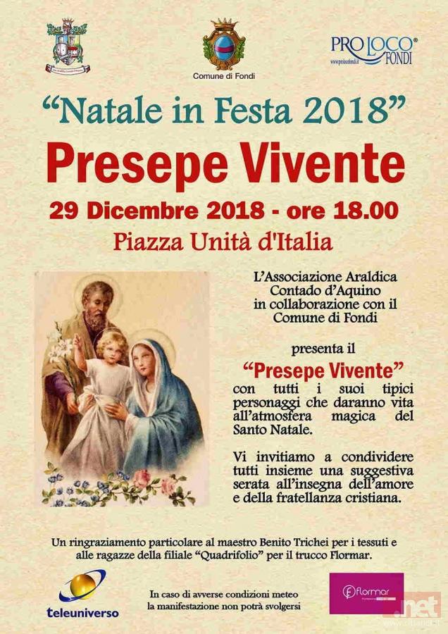 Sabato 29 Dicembre prossimo alle ore 19.00 in piazza Unità d’Italia, ai piedi del Castello Caetani, si svolgerà la Sacra rappresentazione del “Presepe vivente”.