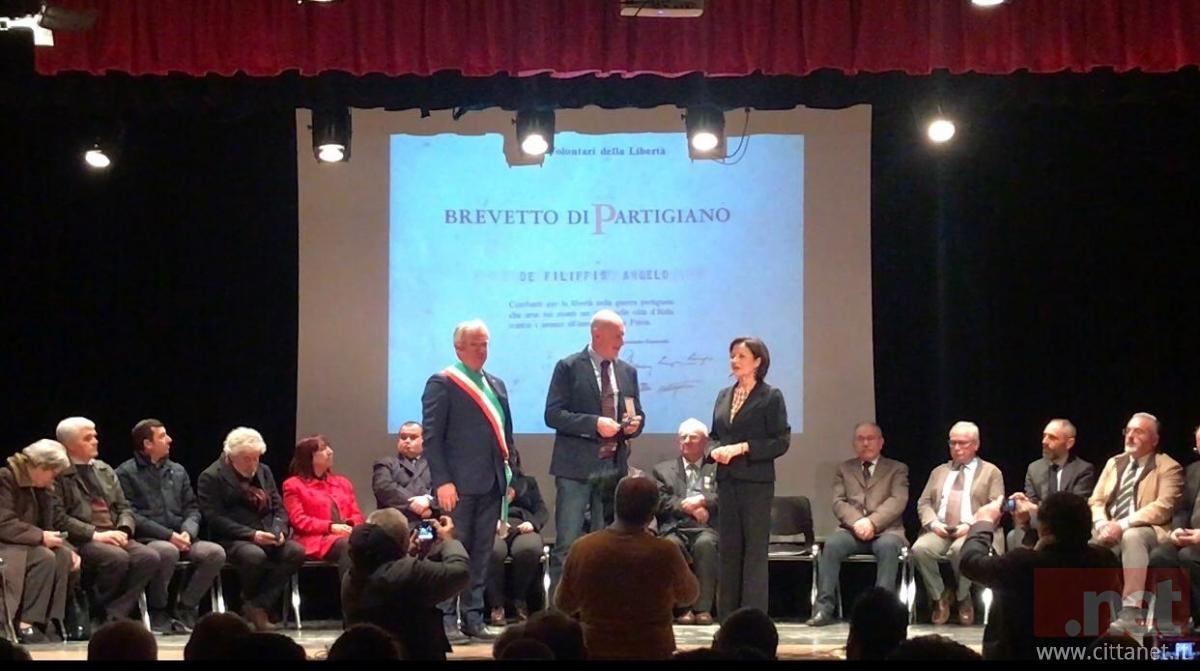 Deportato in Germania per subire la stessa drammatica sorte di milioni di persone, solo per un caso fortuito non venne giustiziato”. E presso il Teatro “Ponchielli” di Latina, il Prefetto della provincia, Maria Rosaria Trio, ha consegnato nelle mani del figlio Pierluigi, rimasto orfano del fratello, dopo la scomparsa di Gianbattista, sindaco ed esponente di spicco della Lenola di fine secolo e dei primi lustri del terzo millennio, l’ambito riconoscimento che l’inquilino del Quirinale ha voluto destinare al “Partigiano Angelo De Filippis”.