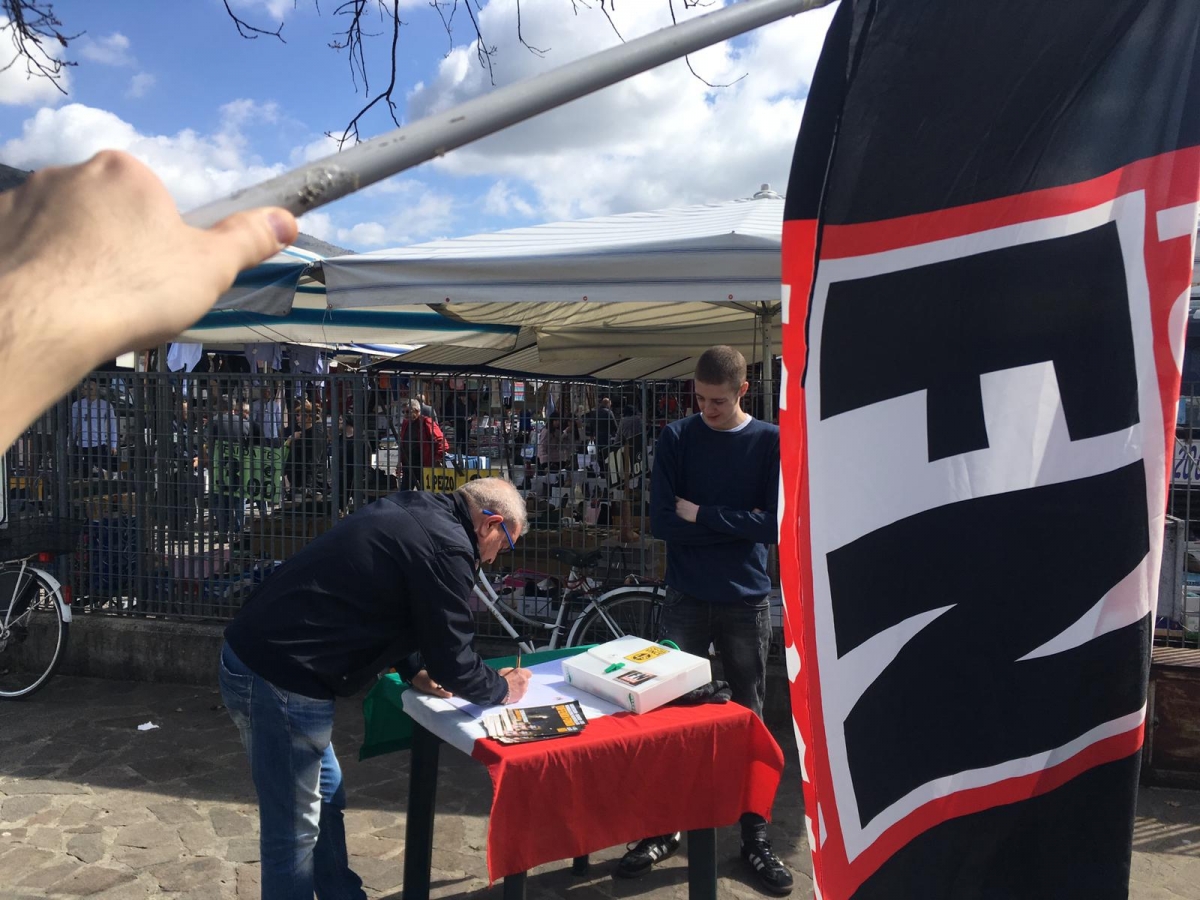 Questa mattina Forza Nuova presente al mercato domenicale con un banchetto informativo supportato da un questionario rivolto alla cittadinanza.