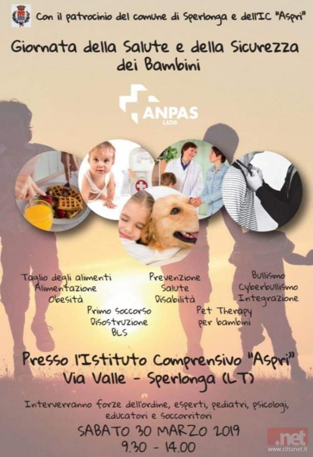 Il programma della giornata della Salute e della Sicurezza dei bambini che si terrà sabato all'istituto compresivo "Aspri" di via Valle a Sperlonga. Tra i temi che saranno affrontati prevenzione contro l'obesità, il bullismo e il cyberbullismo, la pet terapy, la disabilità, il primo soccorso e la disostruzione delle vie aeree.