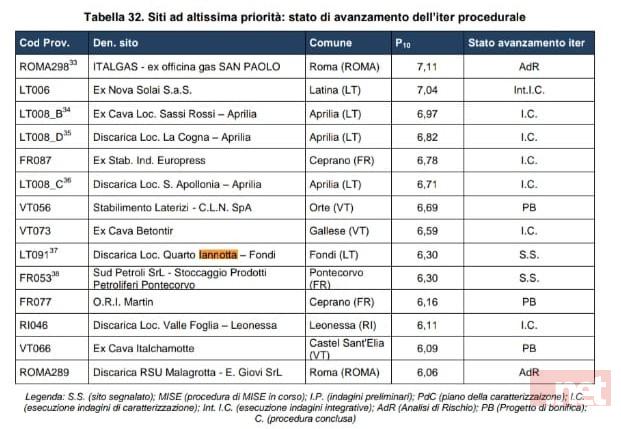 Ribadiamo con forza che il sito è inserito nel piano Regionale di Bonifica con urgenza al numero di protocollo LT091.