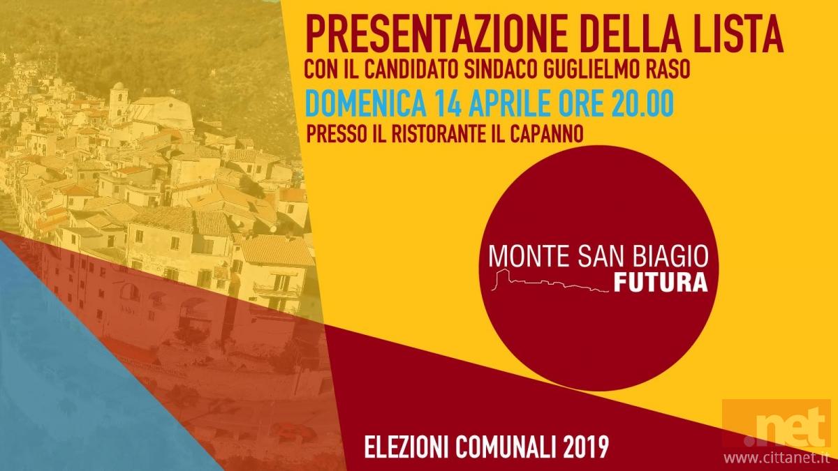 La Lista Civica Monte San Biagio Futura è un soggetto politico di natura puramente civica, nato dalla comune volontà di cittadini, provenienti da tutto il territorio comunale, di partecipare attivamente alla vita pubblica del paese con una proposta politica caratterizzata da innovazione, qualità e competenza, tesa a rigenerare l'attuale classe dirigente e a creare reali e concrete prospettive di sviluppo locale.