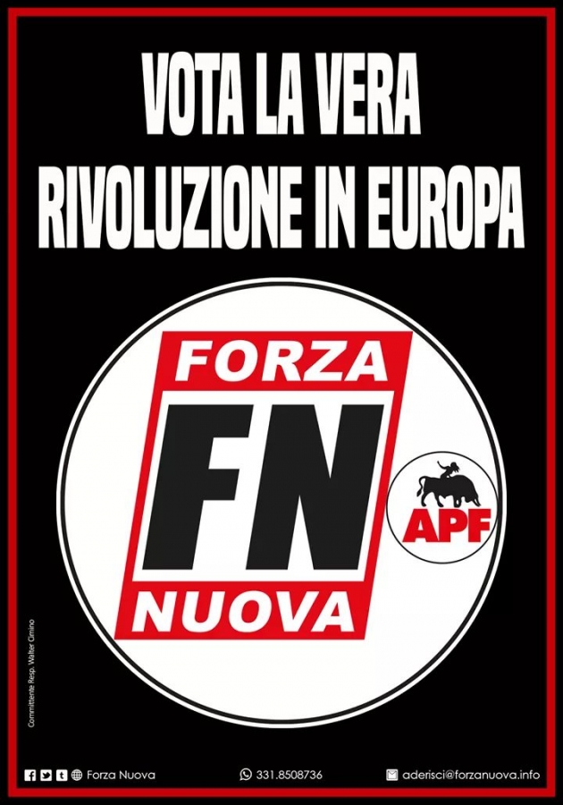 Forza Nuova sarà presente alle elezioni europee del 26 maggio. lo annunciano i coordinatori cittadini del movimento.
