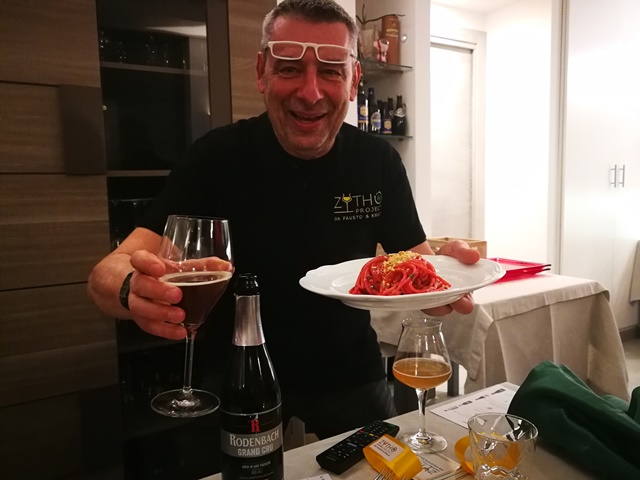 “A cena con Kuaska” è stato il titolo della serata che ha visto l’esordio dell’associazione “Zytho Project”, organo formato dai ragazzi del Knulp Pub (Roberto Guglietta e Lucio Pannozzo) e del ristorante “Da Fausto” proprio per promuovere eventi di cultura birraria e non solo. Con la presenza e l’ausilio dei ragazzi di BrassiFondi capitanati dal presidente Daniele Barlone si è tenuta una serata che ha visto il sold out e che ha portato i presenti in un viaggio nel Belgio più profondo, alla scoperta delle birre “acide”, anche con la presentazione di birre artigianali italiane che ben interpretano questa nicchia.