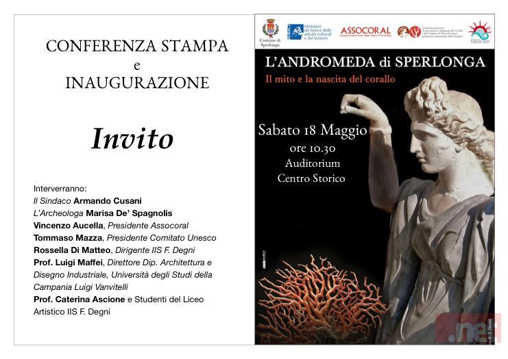 Il Comune di Sperlonga, che conserva nelle collezioni del suo Museo Archeologico Nazionale l’unica statua di Andromeda legata ad uno scoglio, valorizza la scultura e il mito ad essa collegato con una mostra della durata di circa 3 mesi (18 maggio - 27 luglio 2019). L’esposizione riguarderà oggetti di corallo, creazioni di artigiani e da noti artisti di Torre del Greco che hanno per tema il mito della liberazione di Andromeda da parte di Perseo, l’eroe che era riuscito a uccidere la Medusa. Il mito della Gorgone Medusa ricorre spessissimo nelle creazioni degli artisti di Torre del Greco tra cui Carlo Parlati, così anche quello di Perseo. La mostra, che si svolgerà in collaborazione con l’Istituto d’arte di Torre del Greco ed ASSOCORAL, getta nuova luce sulla figura di Andromeda, valorizzando l’unica scultura esistente di questo personaggio (il mito compare in diversi affreschi dalle città vesuviane e ha conosciuto grande successo in opere dal XVI-al XIX secolo). D’altra parte vuole far conoscere le realizzazioni in corallo la cui origine è strettamente legata al nostro mito. La mostra intende altresì essere di stimolo a incentivare scavi archeologici subacquei alla ricerca degli altri due elementi facenti parte del gruppo di Andromeda, cioè Perseo e Cetus, il mostro marino, di cui non si ha notizia.